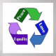 Símbolo familiar de reciclar em roxo, verde e azul diz "Paz, Amor, Igualdade" em diferentes cores. Apoiar a igualdade de direitos para todas as pessoas ou para o mundo melhor que queremos construir continuará a ser um sonho.