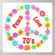 Partilhe o seu amor pela década de 1970 com este bonito design com um sinal de paz feito de flores e as palavras - Peace Love 70's. presente de excelente para um amante da música dos anos 70.