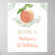 Poster Peach Dourado Floral Birthday Bem-vindo