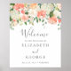 Bem-vindos aos seus convidados de casamento com o nosso símbolo floral de pêssego e creme, com pêssego aquoso e creme floral. Personalize com seus detalhes de casamento em um layout simples e moderno e uma fonte elegante de estilo manuscrito.
