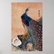 impressão Japonês de Woodblock do século 19 retratando um Pavão.