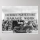 Foto antiga dos anos 30 do compro de reparos e peças da Cherokee Parts Store, Atlanta, Geórgia. Boa vista com um caminhão antigo e frente da oficina de reparação. Foto tirada em 1936 por Walker Evans.