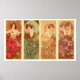 Um poster de Arte Nouveau em comum para combinar quatro impressões de reprodução (Ruby, Ametist, Emerald, Topaz) de Pedras Preciosos e Flores (Les fleurs, Les Pierres précieuses) por volta de 1900, por Alphonse Maria Mucha (24 de julho de 1860 - 14 de julho de 19939999390).
