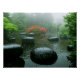 Póster Pedras Negras no Jardim Rainy Zen com Flores |