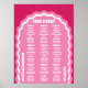 Nosso símbolo de assento de casamento, estilo retrógrado, mínimo e ousado é perfeito para o casal da moda que ama se destacar e fazer uma declaração ousada. Nosso design apresenta uma combinação de cores rosa-magenta brilhante e ousada. Formas simples de arco ondulado e círculo de abstrato criam uma aparência em negrito com "assento" exibido ousadamente em letras grandes e brancas.