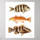 Cores de água originais de 3 espécies de peixes desportivos para águas salgadas- ovelha,cantarilho,garoupa de Nassau