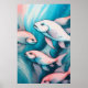 Peixes de desenho de giz azul-rosa A proporção de aspecto é 2:3. Ele foi projetado para ser impresso como 24x36"
