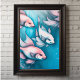 Poster Peixe de desenho do giz azul-rosa VI