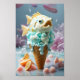Entra num mundo balbucioso onde o oceano encontra a sobremesa neste delicioso poster chamado "Doce Areia Aquática". A IA gerou arte.