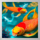 Um design que fiz com um programa IA (Inteligência Artificial)! A trabalho de arte de dois peixes koi laranja nadando debaixo d'água é uma bela representação da astrologia dos Peixes. A cor laranja dos peixes koi simboliza coragem e força, que é uma qualidade que as pessoas Peixes possuem. O movimento do peixe debaixo d'água simbólico da capacidade natural dos Peixes de se adaptarem a diferentes ambientes e circunstâncias. Os dois peixes representam a dualidade da placa de Peixes, mostrando a capacidade dos Peixes tanto para lógica quanto para emoção. Com cores vibrantes e movimentos suaves, essa trabalho de arte é uma espantosa representação do sinal dos Peixes.