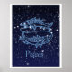 Póster Peixes Constelação e Sinal Zodiac com Estrelas