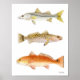 De estudos originais de aquarela feitos pelo artista da natureza, Thom Glace of common saltwater game fish- snook, spoted seatrout & redfish ou tambor vermelho.