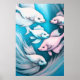 Poster Peixes de Giz Azul Cor-de-Rosa Desenho VII