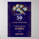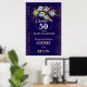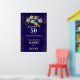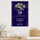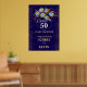 Elegante azul escuro e ouro 50º convite de aniversário de casamento com anel de ouro e penas de pavão, mude todo o texto você mesmo para qualquer aniversário ou ocasião. Este sinal será facilmente convertido para os tamanhos de 20 x 30 e 24 x 36 polegadas.