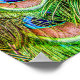 Impressão com uma aproximação das magníficas penas escaneadas no trem de um pavão, destacando seus detalhes iridescentes de verde, azul e bronze. Decoração de parede única para amantes de aves e da natureza. Foto tirada em Arcadia, Califórnia.
