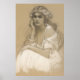 Esta bela poster apresenta um desenho de lápis de lápis baseado na série de 1897 de Alphonse Mucha, que foram originalmente criados como designs de calendário. No entanto, a parte do calendário foi removida, e o desenho se tornou um popular painel decorativo vendido sob o título "Evocação" em 1898. O esboço retrata uma mulher com um vestido de pano leve, feito em delicadas linhas esboçadas, mostrando o estilo único de Mucha. O desenho captura a visão sonhadora de Mucha de um ser espiritual, um motivo que ele perseguia desde o início dos anos 1890. Curiosamente, Mucha esteve perto do círculo dos espiritualistas em Paris naquela época, muitas vezes participando de experimentos psíquicos em seu estúdio usando um meio. O olhar fixo e a postura rígida da mulher mostram a influência de tais experimentos.