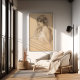 Esta bela poster apresenta um desenho de lápis de lápis baseado na série de 1897 de Alphonse Mucha, que foram originalmente criados como designs de calendário. No entanto, a parte do calendário foi removida, e o desenho se tornou um popular painel decorativo vendido sob o título "Evocação" em 1898. O esboço retrata uma mulher com um vestido de pano leve, feito em delicadas linhas esboçadas, mostrando o estilo único de Mucha. O desenho captura a visão sonhadora de Mucha de um ser espiritual, um motivo que ele perseguia desde o início dos anos 1890. Curiosamente, Mucha esteve perto do círculo dos espiritualistas em Paris naquela época, muitas vezes participando de experimentos psíquicos em seu estúdio usando um meio. O olhar fixo e a postura rígida da mulher mostram a influência de tais experimentos.
