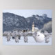 híbridos engraçados entre pinguins e elefantes se divertindo em um belo dia de inverno, tocando na neve - um ficou preso em uma enorme bola de neve. os bastidores mostram Unken em Salzburgo, Áustria