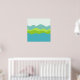 Um design constituído por formas irregulares de onda ou colina dispostas como uma paisagem com progressão de bandas, uma atrás ou sobre outra brincando abstratamente com cor e espaço. A design também lembra muito o som e a música com as formas da onda e harmonizando as cores.