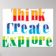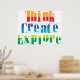 Pensar, Criar e explorar é um lembrete de excelente de que você pode fazer essas coisas para ampliar seus horizontes. Isso será um excelente extra para a sala de aula, campus ou escritório. Os educadores fazem os seus alunos pensar, criar e explorar as possibilidades! Os gerentes colocam isso na sala de trabalho para inspirar seus funcionários.
