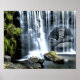 Poster com chimpanzé e arte aquática de queda de água. O chimpanzé tem uma pose e expressão, como está pensando e se perguntando sobre algo.