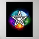 Pentagrama luminoso desenhado artificialmente com cinco elementos mágicos, água, terra, fogo, astral, ar sobre fundo negro. Pentagrama Wiccan. Wicca