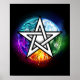 Pentagrama luminoso desenhado artificialmente com cinco elementos mágicos, água, terra, fogo, astral, ar sobre fundo negro. Pentagrama Wiccan. Wicca