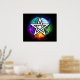 Pentagrama luminoso desenhado artificialmente com cinco elementos mágicos, água, terra, fogo, astral, ar sobre fundo negro. Pentagrama Wiccan. Wicca