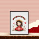 Pequena princesa bonita em vestido vermelho com flores e corações em fundo branco
