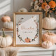 Celebrar a chegada da sua abóbora com este símbolo de chás de fraldas com tema de outono fofo com um charmoso design de flor silvestre com uma pequena abóbora fofa, pequenas flores silvestres, galhos e folhas e um padrão correspondente no lado oposto. Este sinal capta perfeitamente o calor e o conforto da estação do outono. As cores quentes e a fonte divertida irão certamente dar o tom para uma celebração memorável e festiva.