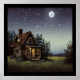 Uma bela cabana de abstrato, ao luar.