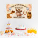 Um pequeno cavalo de vaqueiro num primeiro estandarte de aniversário feliz.