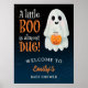 Prepare-se para despertar alguma entusiasmo para seu chá de fraldas neutro de gênero, porque um pouco de "boo" está quase para acontecer! Nosso convite à aquarela pintado à mão apresenta um adorável fantasma branco berrando um balde em forma de abóbora cheio de deliciosos doces de Halloween brilhantes, estabelecendo o humor certo para sua celebração assustadora. O divertido roteiro do Dia das Bruxas adiciona um traço de cinza, tudo colocado contra um plano de fundo comum de gradiente azul poeirento e preto. O fantasma bonitinho, balde de abóbora, e doces de Halloween fazem disso uma escolha encantadora para o seu chá de fraldas de sinais de boas-vindas no Halloween.