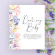 O convite para chás de fraldas apresenta lindas flores silvestres de aquarela e um roteiro de caligrafia que é perfeito para chás de fraldas de primavera, verão ou outono. Bebê na flor!