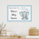 Bem-vindos convidados para o seu filho chá com este fofo poster que apresenta "Um Doce Pequeno Amendoim Está a Caminho" escrito numa mistura de tipografia moderna e um roteiro azul na moda e uma aquarela azul pastel de um elefante bebê.
