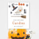 Apresentando uma aquarela fofinha de fantasma bebê e estética de Halloween. Um pouco de bu está quase a chegar! Chá de fraldas temático do Halloween com fantasma de aquarela, gato preto, chapéu de bruxa, esfregão mágico, aranha pendurada numa teia. O pequeno fantasma está comendo um pirulito.
