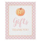 Nosso pequeno aniversário de abóbora com abóbora e rosa pastel. Sinal de presentes.