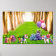 unicórnios de cor clara, um pequeno pônei e ursos peludos são colocados em um caminho verde luxuoso com árvores, evocando uma atmosfera balnear. Balões e flores acrescentam ao tema lúdico e mágico da cena. Um poster ideal para um berçário, sala de jogos ou quarto. Esta imagem também está disponível para download instantâneo e você pode transferi-la facilmente para outros tamanhos de poster e 1.000 de outros produtos.