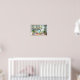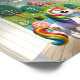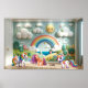 Um mural branco e colorido decora sala de uma criança, apresentando um sol alegre, nuvens fofinhas e um arco-íris vibrante que passa pelo céu. Abaixo, unicórnios como brinquedos com manes arco-íris tocam em pisos de madeira, cercados por uma encantadora paisagem, criando uma atmosfera alegre e imaginativa. O Pequeno Pôneo infelizmente teve um pó! Esta imagem também está disponível para download instantâneo e você pode transferi-la facilmente para outros tamanhos de poster e 1.000 de outros produtos.