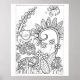 Meu desenho preto e branco com um pequeno sapo e abelha com flores de fantasia em um poster que as crianças podem colorir.