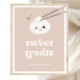 Boho Sweet Treats Sign apresentando um adorável Dumpling Kawaii Bao complementado por uma paleta de cores neutras e a tipografia retrô.