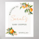 Simples e elegante sinal de boas-vindas ao chá de fraldas de citros florais verde e laranja, perfeito para um chá de fraldas temático Little Cutie.