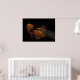 Esta poster apresenta uma vida estática clássica de um velho e elegante pergaminho de violino. Este instrumento gracioso é essencialmente uma caixa de madeira oca com extremidades arredondadas, dois buracos graciosos e um centro estreito. Os quatro conjuntos de cordas estendem-se de um suporte de cordas na parte inferior do corpo sobre uma ponte elevada até a extremidade do pescoço estreito, ou da placa do dedo, onde as quatro cordas são inseridas em uma pegbox e são mantidas com pegs. Os pinos são usados para ajustar o violino. Quando o arco é desenhado através das cordas no corpo do violino, ele produz uma música incrível e mágica! Os tons castanhos, quase laranja, maravilhosos e ouros são disparados por um fundo preto.