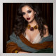 Add a touch of luxury and romance to your home decor with a captivating image that embodies elegance and boldness: a figure with curly hair and striking makeup (deep red lips, smoky eyes) wears a statement floral necklace with yellow and purple roses, paired with delicate lace fabric and richly draped earth-toned (brown and green) layers. The dark background accentuates the vibrant details, making this image perfect for fashion, decor, or artistic designs that celebrate intricate details and sophisticated allure.