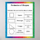 As fórmulas do perímetro para quadrados, retângulos, círculos e triângulos contra um fundo de cor arco-íris num poster. Excelente para professor de matemática ou professor de escola!