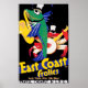 O jazz clássico temia poster de viagens com um peixe tocando saxofone e um caranguejo tocando banjo. A inscrição diz Frolices da Costa Leste / Não. 6 Aqueles Blues do Lado do Derrador / VIAGEM CHEAPLY por L.N.E.R. (Passei 5 horas tocando as cores! Louco!)