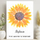 Esta poster única é decorada com um girassol amarelo e as palavras "Você é o meu Sol." Facilmente personalizável com um nome ou monograma. Para editar ainda mais, use a Ferramenta Design para alterar a fonte, o tamanho da fonte ou a cor. Porque nós criamos a nossa trabalho de arte, você não encontrará esta imagem exata de outros designers. Original Watercolor © Michele Davies.