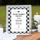 Um churrasco casual, mas sofisticado, com o tema "Tailgate & Celebrate", casais, placa de menu de bebida do chá de casamento para um casal, apresenta um pequeno motivo de porco, texto personalizado em fontes estilo ocidental, e um escroll e elementos design de stripe. Design e texto preto-e-branco com a coordenação da borda da xadrez de mesa de verão de gingham.