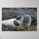 Um selo de Harbor, numa cama de algas, coçando uma comichão.
