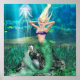Sereia loira sob o mar com uma água-viva.
